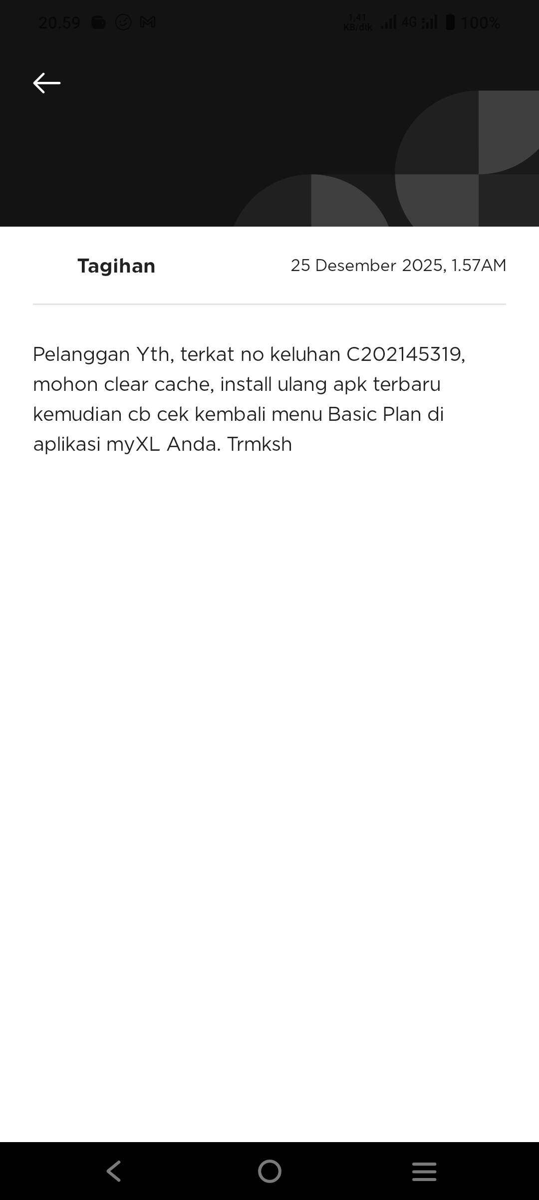 Mohon pihak XL dapat segera membantu mengatasi masalah ini, karena sebagai pelanggan saya merasa dirugikan akibat nomor saya tidak dapat digunakan untuk mengakses layanan internet selama beberapa hari terakhir.